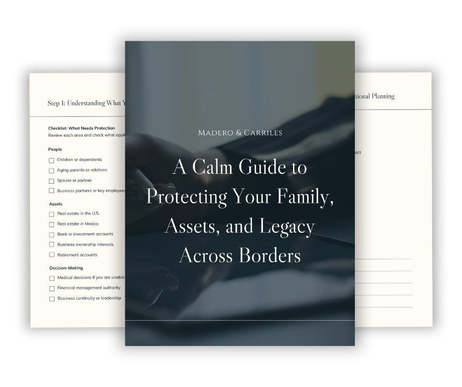 We guide individuals, families, and business owners through the legal systems of the United States and Mexico with clarity, empathy, and long term vision, so every decision protects your family, secures your future, and builds generational wealth across borders.
